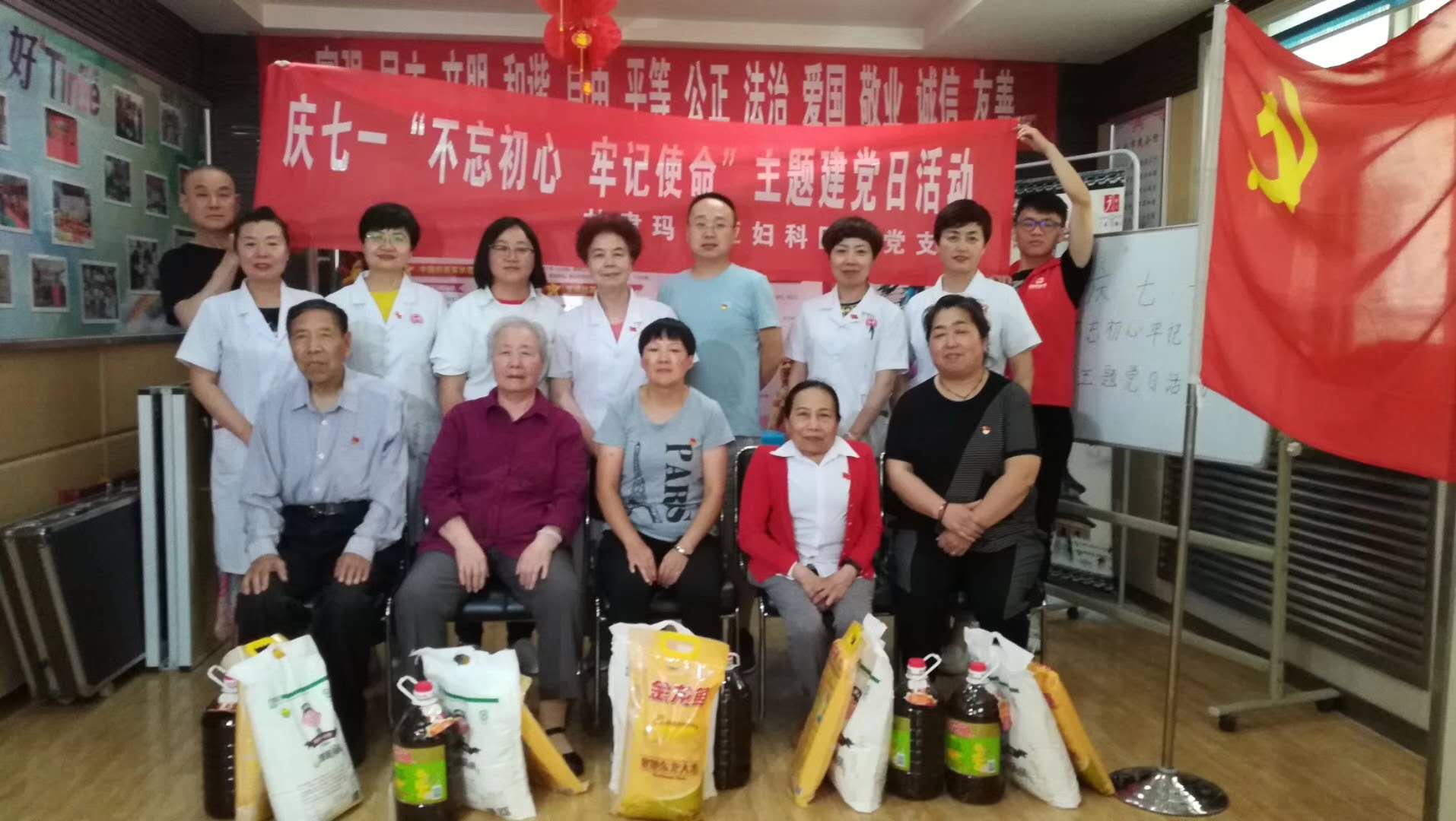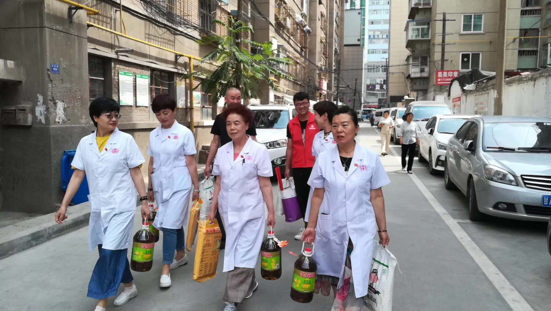 7月1日下午,甘肃玛丽亚妇科医院党支部一行8人在党支部书记杨春秀的带领下,顶着炎炎烈日,提着慰问品,一路同行来到民勤街社区,看望并慰问社区老党员。
