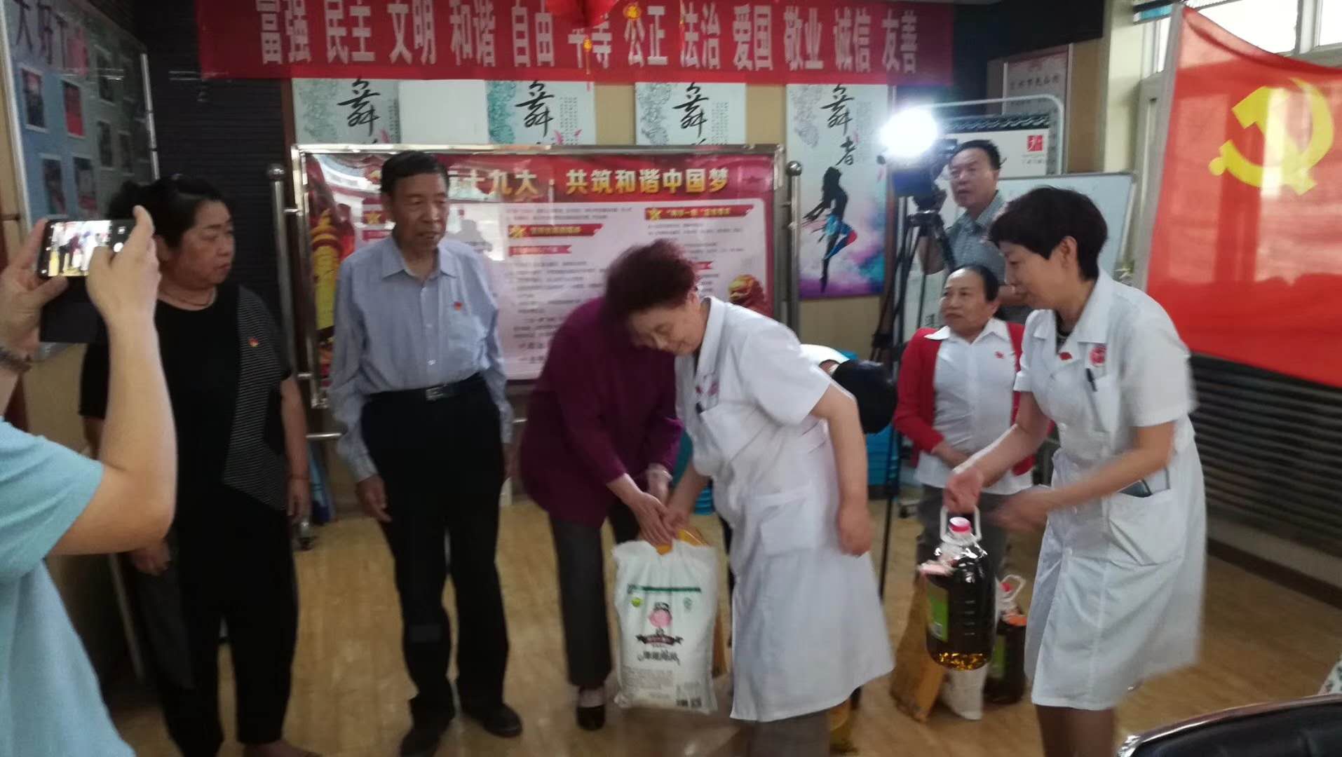 座谈会结束后,双方单位党员代表为辖区到会的困难老党员发了慰问品,送上了玛丽亚人的温暖和关怀。