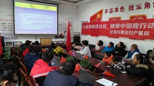 2020年1月6日下午,健康中国行动·甘肃玛丽亚妇产医院“呼吸道疾病防治”系列公益专题讲座走进靖远路街道九州中路社区,来自社区的工作人员、居民及小学生约30多人认真聆听了玛丽亚医院内科副主任医师张瑞兰的讲座。