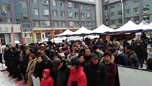 当车辆到达现场时,受到了等待的街道领导和群众的热烈欢迎,尽管外面冰雪天地,但困难群众热烈期盼的眼神和众多企业奉献爱心的场景却温暖如春,现场处处呈现出祥和的氛围。