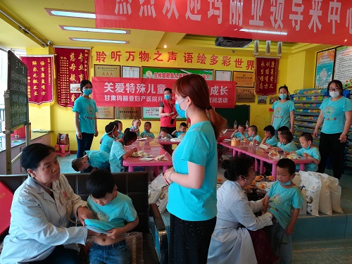 5月28日,正值六一来临之际,甘肃玛丽亚妇产医院张瑞兰主任、孙淑娴主任及医护人员组成的医疗志愿者一行来到兰州启聪聋儿语言康复中心,为TI听力障碍儿童送上儿童节臻爱礼物与健康体查,陪伴孩子们快乐过六一。
