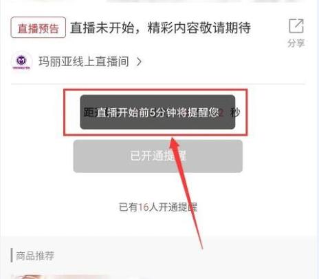当您预约成功后,会弹出“直播开始前5分钟将提醒您”的提示。