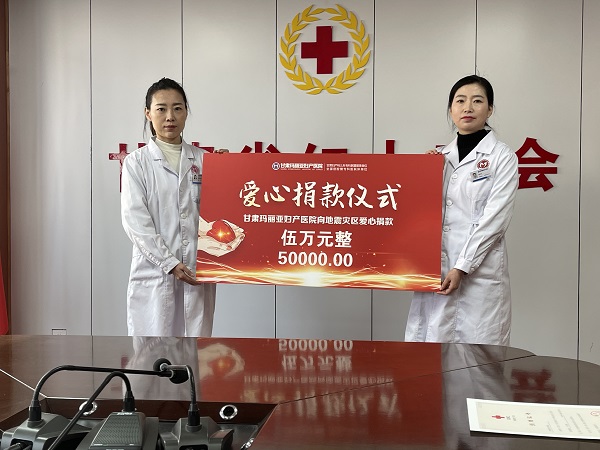 一方有难,八方支援。近日,甘肃玛丽亚妇产医院举行了向甘肃临夏州积石山县抗震救灾捐赠仪式,通过甘肃省红十字协会向灾区捐款5万元。