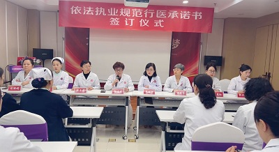随后全体医务人员签订了《依法执业规范行医承诺书》,进一步明确了临床科室和医务人员在依法执业工作中的责任和义务。责任书从坚守职业道德,践行依法执业;保障患者权益,强化知情同意;规范诊疗行为,杜绝过度医疗;严守医疗质量安全核心制度;强化风险管理,完善投诉处理;规范出生医学证明管理;履行社会责任,践行廉洁从医等方面提出了具体要求,医务人员对落实以上要求做出了承诺。
