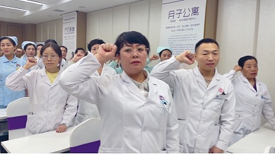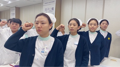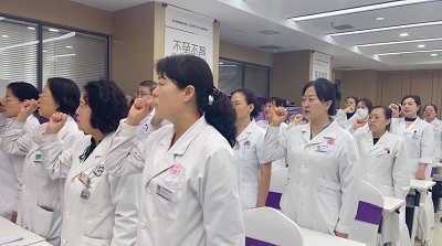 随后,在业务院长宋兆萍的带领下,全体医务人员起立,庄严的进行了依法执业规范行医的宣誓:自觉维护医学的尊严和神圣,敬佑生命,平等仁爱,患者至上,真诚守信,精进审慎,廉洁公正,终身学习,努力担当增进人类健康的崇高职责。