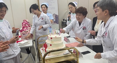 最后,院领导为护士们赠送了伴手礼,并为护士们准备了一个精美的大型生日蛋糕。那一刻,院领导与护士们一起分享快乐,一起庆祝专属于”最美白衣天使”的节日。